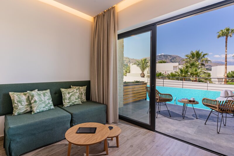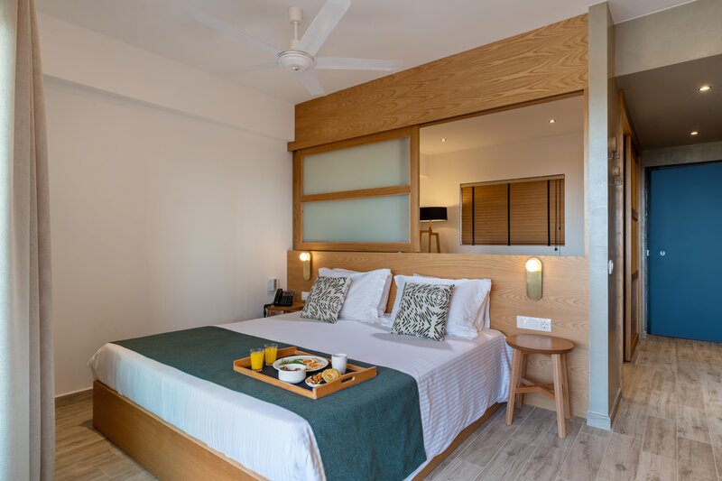 Gæsterne vil finde et behageligt indeklima på værelserne i kraft af et klimaanlæg og ventilator. Der tilbydes boligenheder hvor gæsterne vil finde en sidelæns havudsigt på altanen eller terrassen. Der tilbydes værelser med en kingsize-seng og en sovesofa. Børnesenge stilles til rådighed på forespørgsel uden ekstra betaling. Herudover står der en safeboks og en minibar til rådighed. Et minikøleskab hører ligeledes til standardindretningen. Endvidere giver telefon, satellit-tv, en videospilkonsol og WiFi (uden gebyr) uovertruffen feriekomfort. Gæsterne vil finde et par hjemmesko i boligen. På badeværelserne er der brusebad. Til gæsternes daglige behov forefindes også en hårtørrer, et sminkespejl, badekåber og telefon. Kosmetikprodukter på badeværelserne sørger for den særlige komfort.